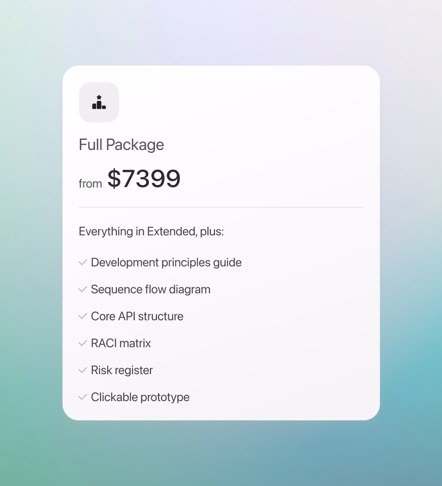Discovery delivers structured documentation and estimates that add credibility to your pitch—many of our clients use these deliverables directly in funding applications.